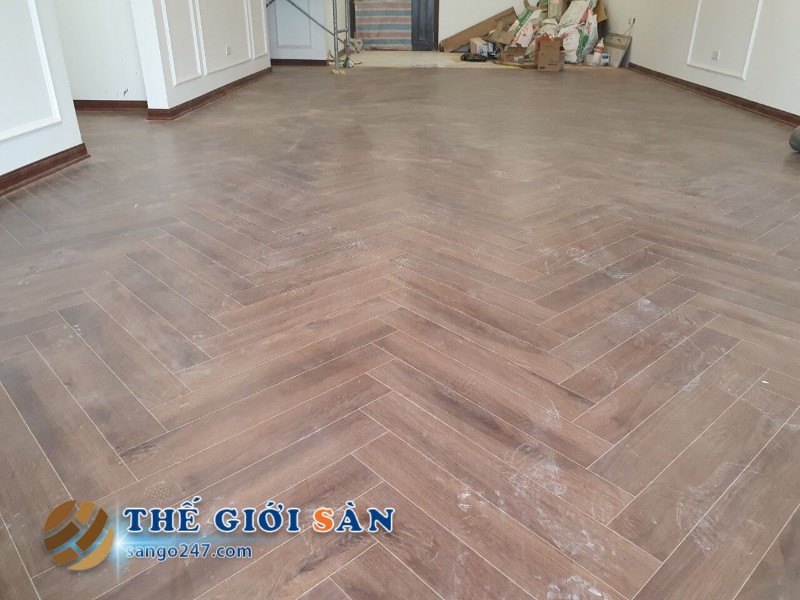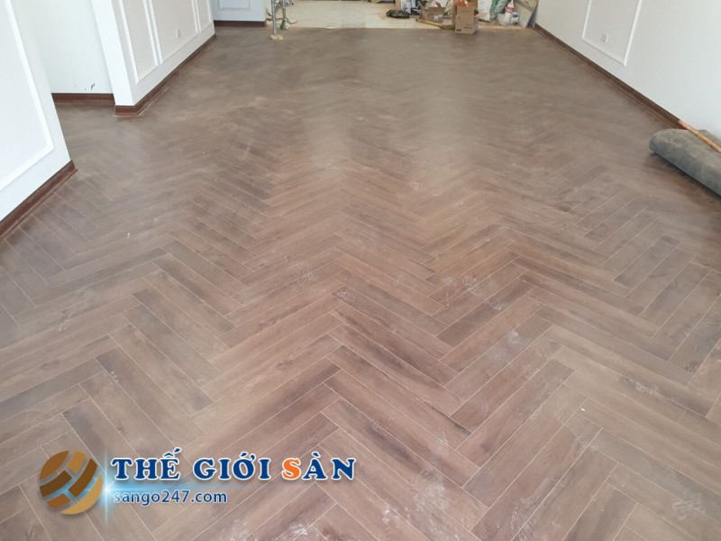 Một số hình ảnh sàn thi công thực tế Sàn Gỗ Xương Cá AVIVA: