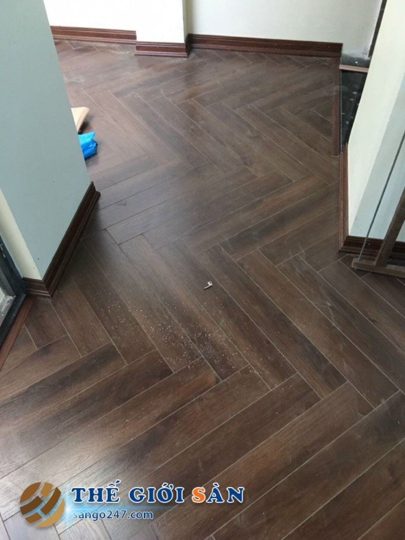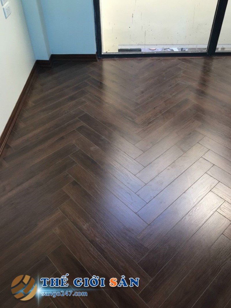 Một số hình ảnh sàn thi công thực tế Sàn Gỗ Xương Cá CADINO CN662: