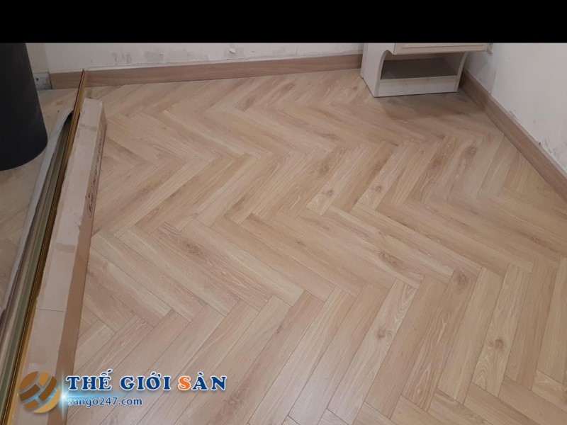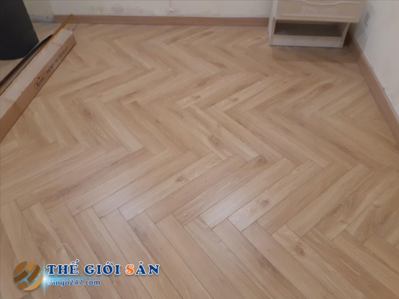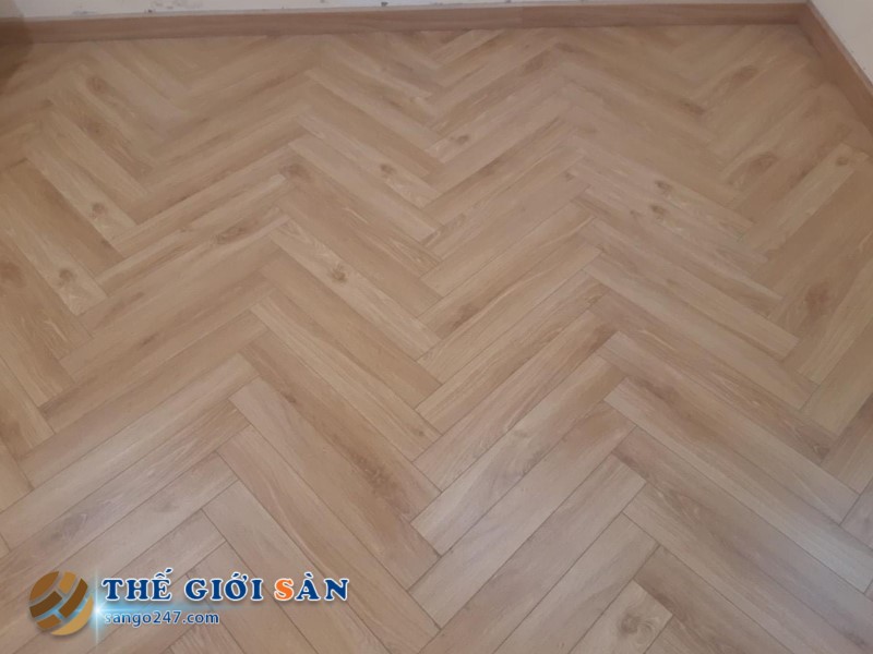 Một số hình ảnh sàn thi công thực tế Sàn Gỗ Xương Cá Mayer M218: