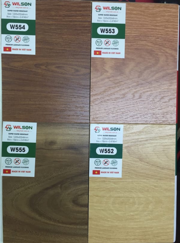 Sàn gỗ công nghiệp Wilson 8mm – Made in Viet Nam đã xuất hiện và được kiểm nghiệm chất lượng qua thời gian khá lâu tại thị trường Việt Nam. Với màu sắc đa dạng, phong phú, chất lượng ổn định cùng cốt gỗ siêu bền…sàn gỗ Wilson được ứng dụng phù hợp với nhiều không gian nội thất như phòng khách, phòng ngủ, văn phòng, trường học, nhà hàng, khách sạn … phù hợp cho cả thiết kế cổ điển, tân cổ điển hay thiết kế hiện đại.